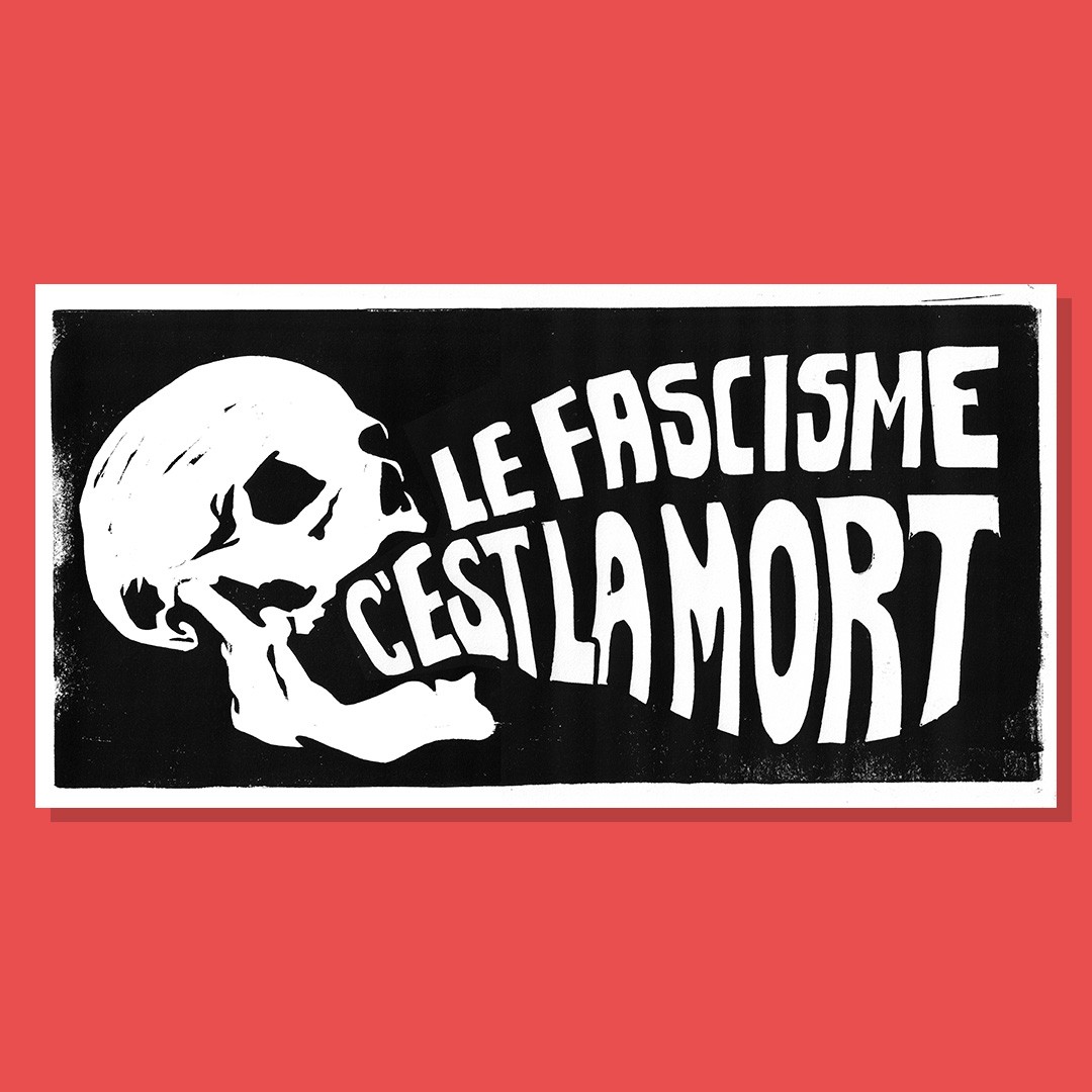 Gravure "Le fascisme c'est la mort", imprimée à la main.